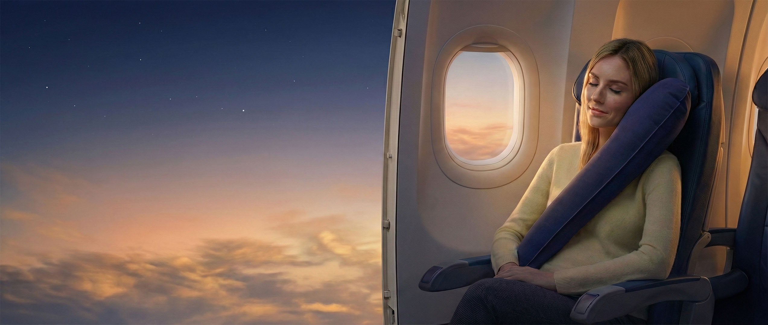 Our patented tethered design was the first of its kind in the travel industry. The adjustable cord attaches to your seat's headrest or wings, keeping the pillow securely in position so it won't shift or slip while you sleep. This ensures you maintain natural neck alignment throughout your journey.