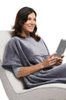 This poncho-style blanket comes in 38" x 72". Made from plush coral fleece that covers your shoulders and won't slip down. Perfect for home, auto, train, sports events, and air travel.